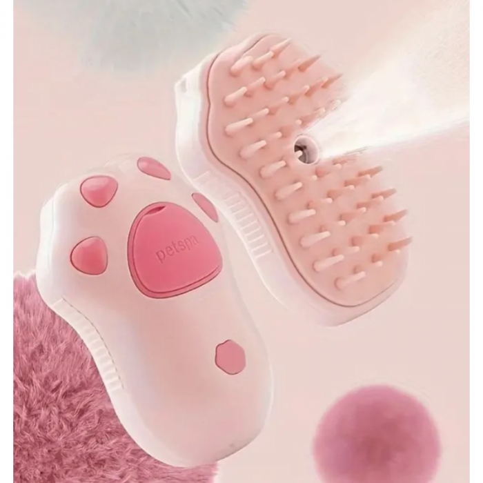 Cepillo de vapor 3 en 1 diseñado para el cuidado diario de mascotas. Cepilla, masajea y libera vapor, ayudando a retirar pelo suelto, suciedad superficial y a mantener el pelaje más ordenado y saludable.